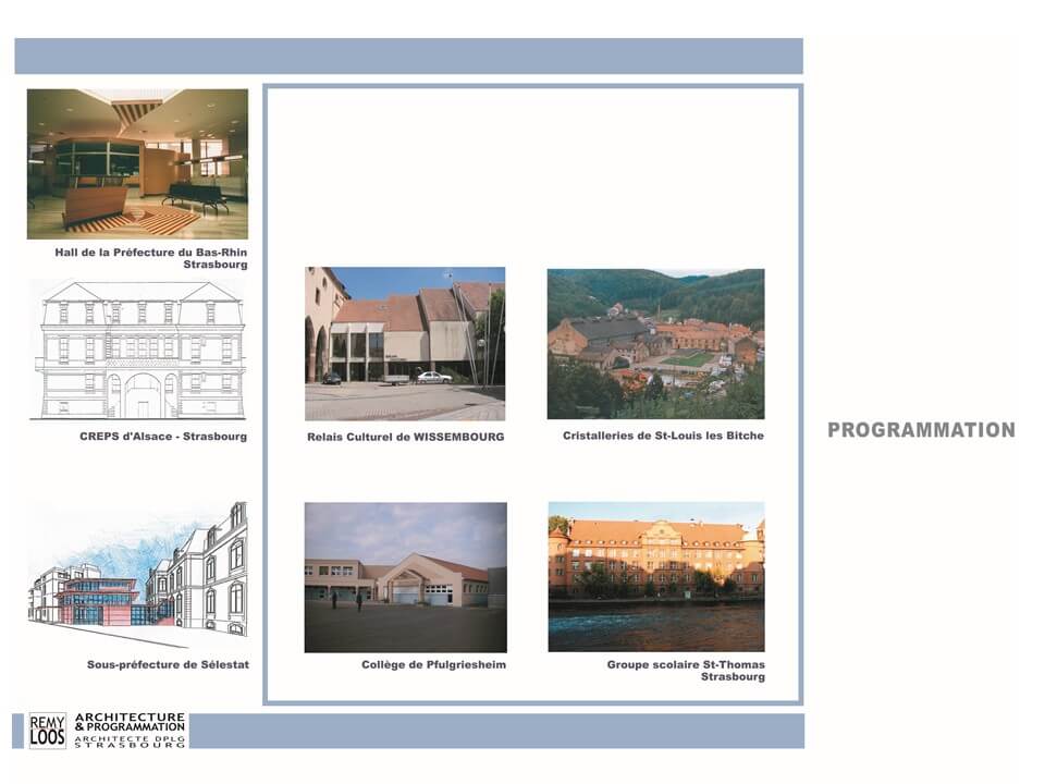 Riche d’une pratique de maîtrise d’œuvre en marché public et privé de plus de vingt ans, soutenue par les compétences acquises au cours de la mise au point de programmes et affermie par l’activité d’expert de la construction, ce cabinet répond à tous types de sollicitations concernant l’organisation spatiale et technique, la mise en forme des constructions et leur analyse.